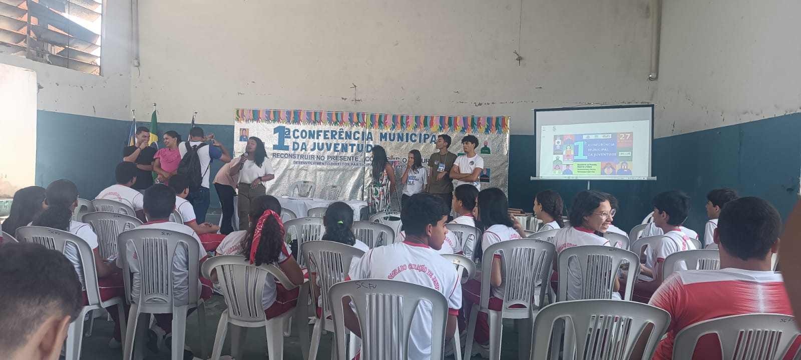 Aquidabã realizou nesta quarta-feira, 27 de setembro de 2023, a sua 1ª edição da Conferência Municipal de Juventude, com o tema Reconstruir no Presente, Construir o Futuro: Desenvolvimento, Direitos, Participação e Bem Viver, no Centro de Convivência e Fortalecimento de Vínculos, que fica localizado nas proximidades da Lagoa do Vigario. O evento organizado pela Secretaria Municipal de Esportes em parceria com a Assistência Social, contou com as participações de Mylena Rocha e Jonas Henrique, representantes da Associação Comunitária de Comunicação e Cultura de Aquidabã e dos integrantes do Mídia Jovem.